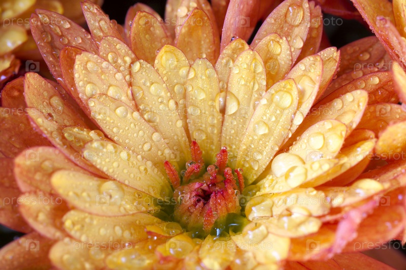 Цветок хризантемы в росе