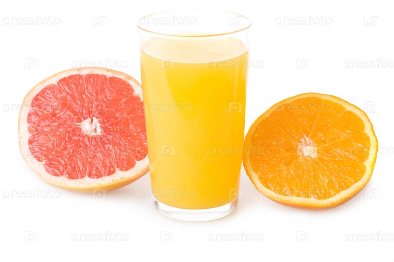 Спелые грейпфруты и стакан сока