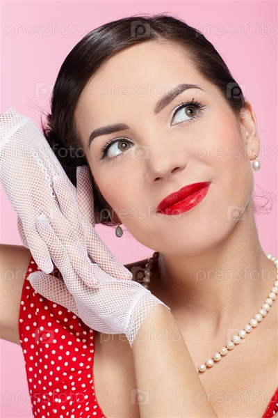 Портрет красивой девушки, одетой в ретро стиле и белых перчатках
