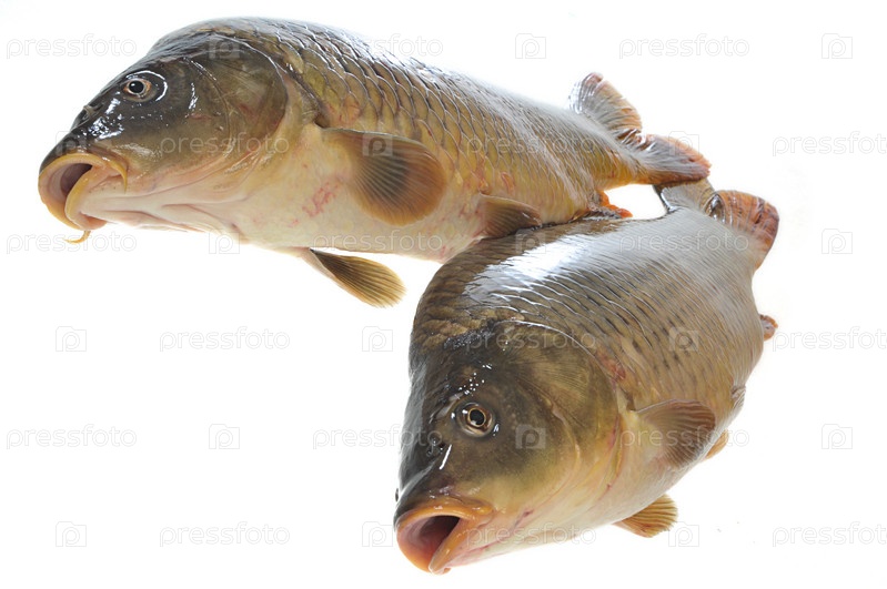 Два свежих карпа на белом фоне