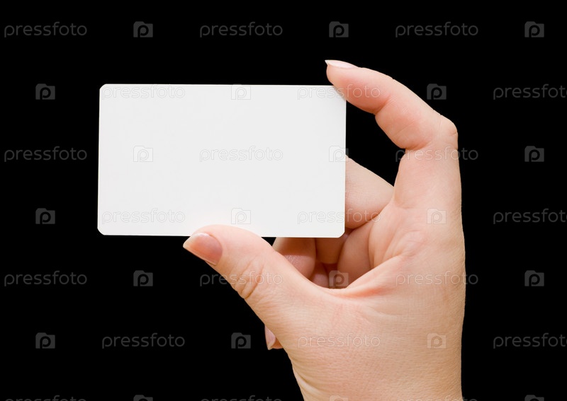 Рука держит белую карточку на черном фоне