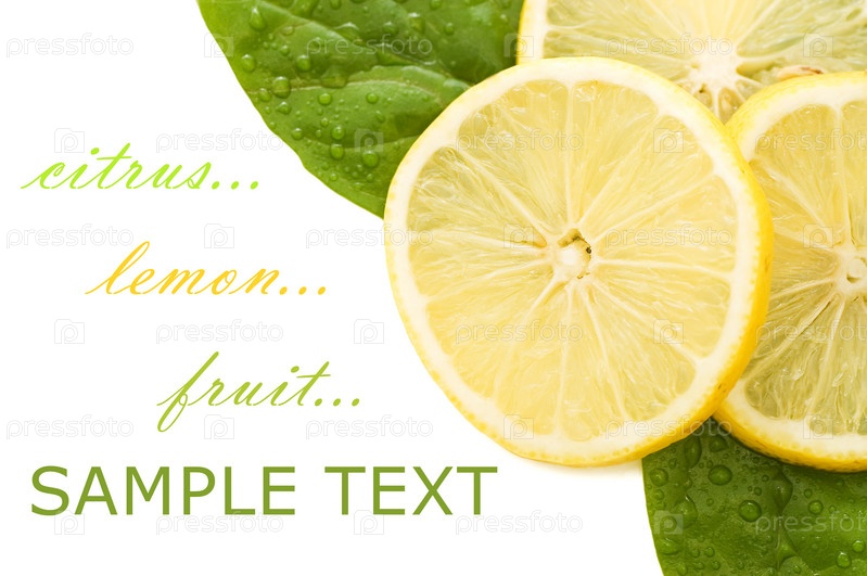 Свежий сочный лимон с зелеными листьями