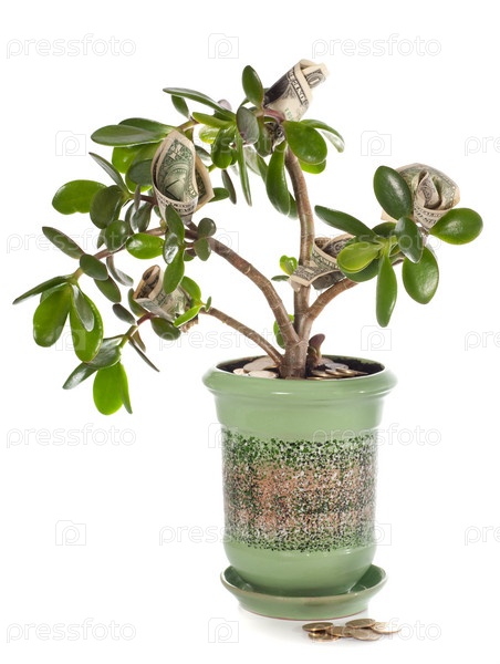 Денежное дерево в горшке на белом фоне
