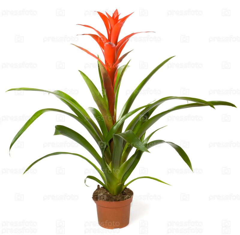 Бромелия в горшке на белом фоне