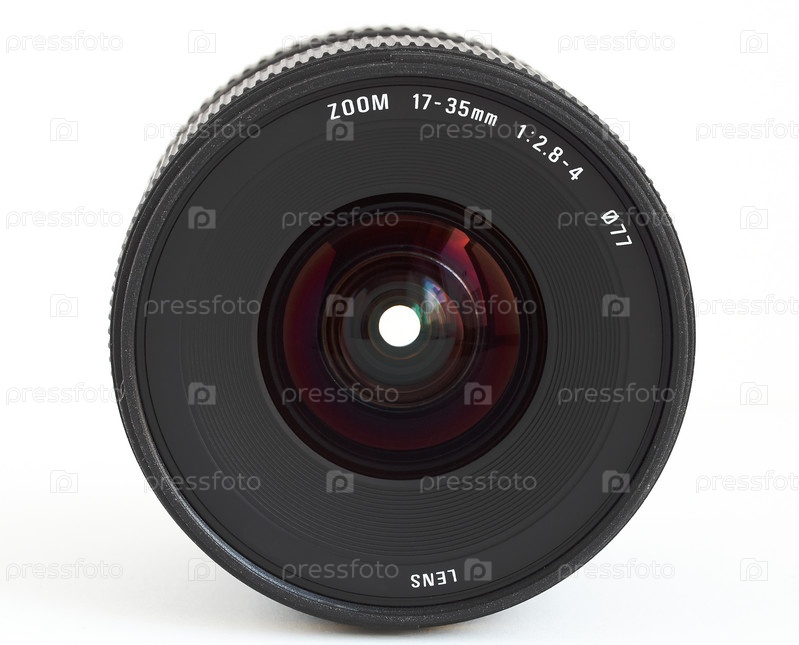 Широкоугольный зумовый объектив для зеркальной камеры SLR на белом фоне