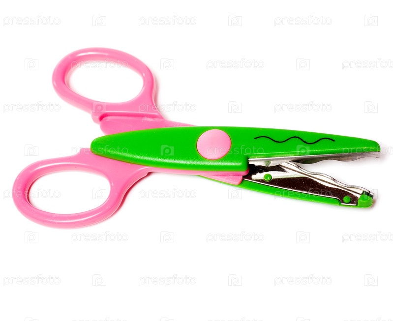 Зигзагообразные детские ножницы на белом фоне