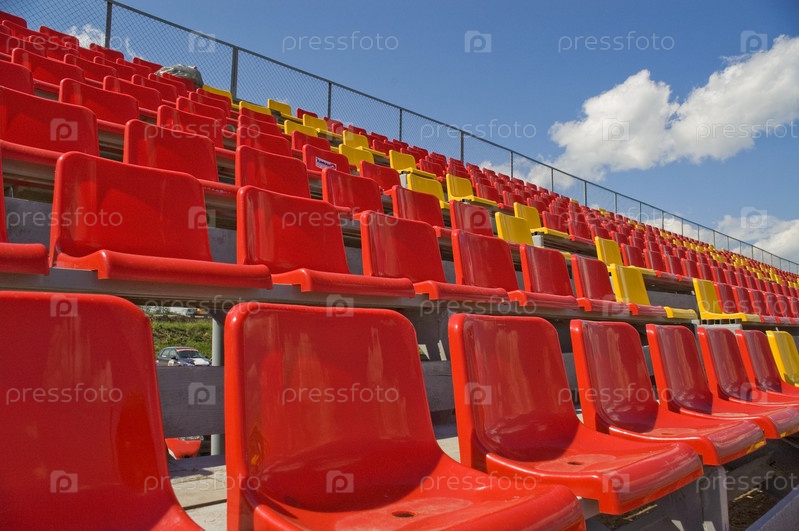 Красные и желтые сидения на стадионе