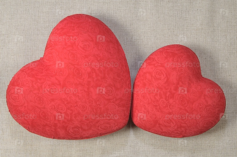Два красных сердца на сером саке