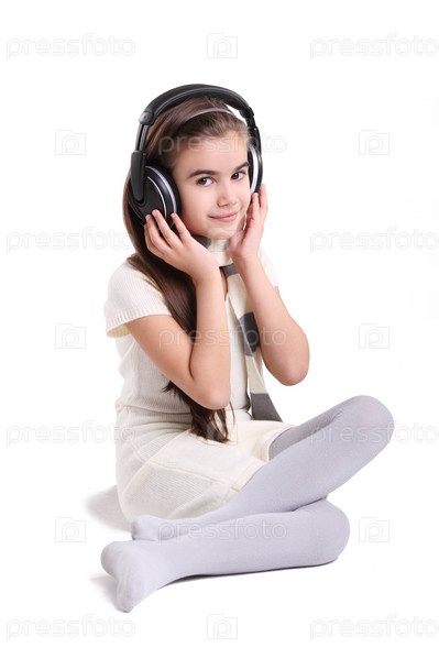 Девочка слушает музыку