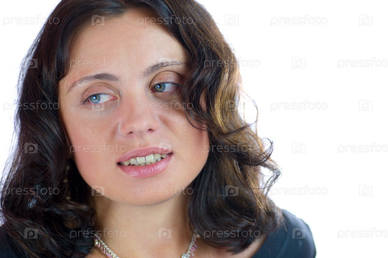 Портрет усталой молодой женщины на белом фоне