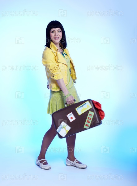 Молодая девушка с чемоданом