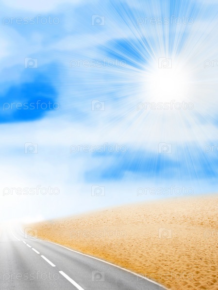 Трасса в пустыне и облачное небо