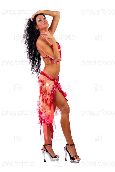 Молодая красивая девушка в танцевальном костюме на белом фоне