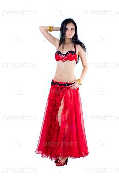 Молодая красивая девушка в танцевальном костюме на белом фоне