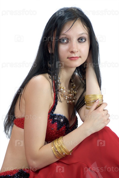 Молодая красивая девушка в танцевальном костюме на белом фоне