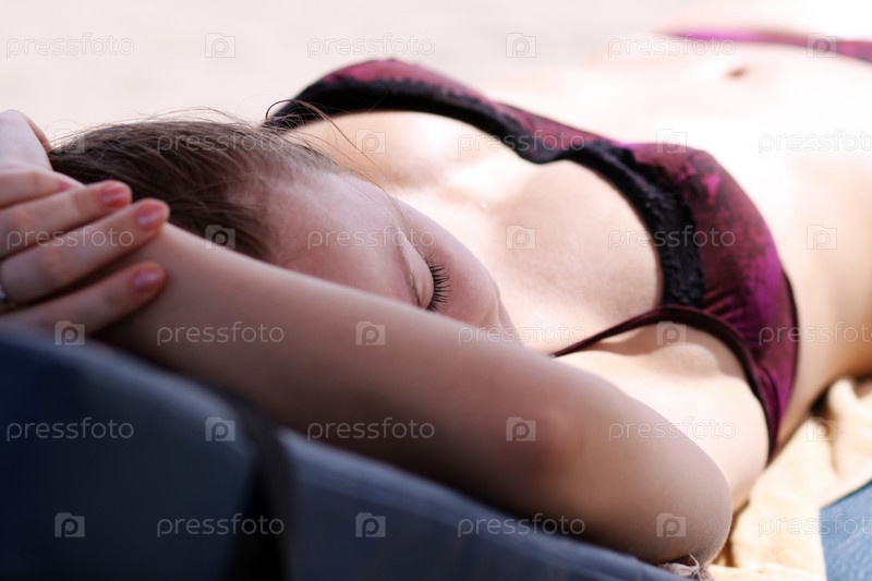 Молодая девушка лежит и загорает