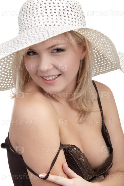 Портрет красивой блондинки в шляпе с большими полями