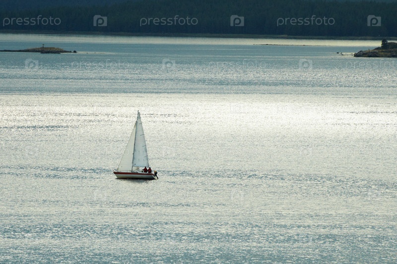 Маленькая одинокая яхта посреди моря