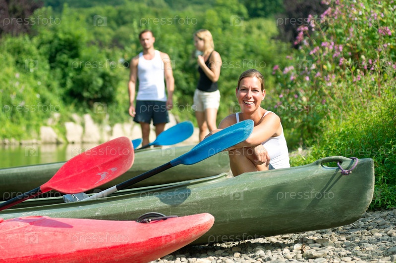 Женщина, сидящая у каяка