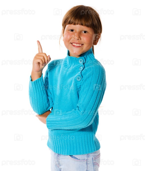 Портрет маленькой счастливой девочки на белом фоне