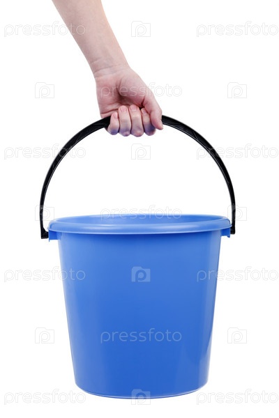 Пластиковое ведро в руке