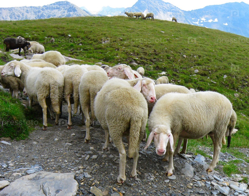 Стадо овец на пастбище в Альпах, Австрия