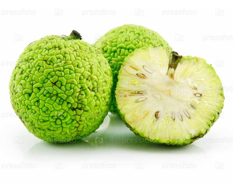Нарезанные апельсины осаже (Maclura) изолированы на белом фоне