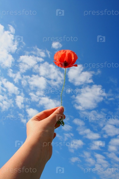 Красный мак на фоне синего неба
