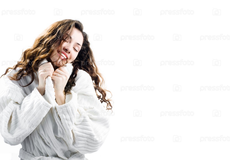 Девушка в халате на белом фоне
