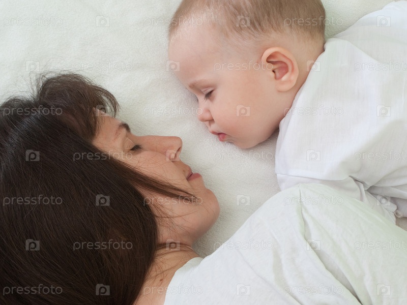 Спящая мать и милый ребенок в семейной любви