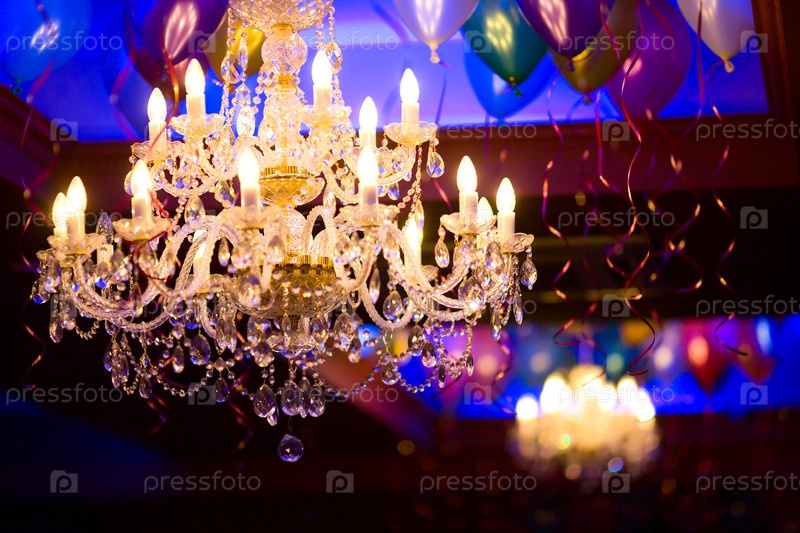 Огромная красивая люстра, висящая на потолке