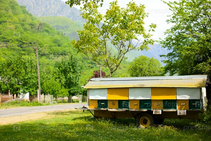Несколько пчелиных ульев на колесах
