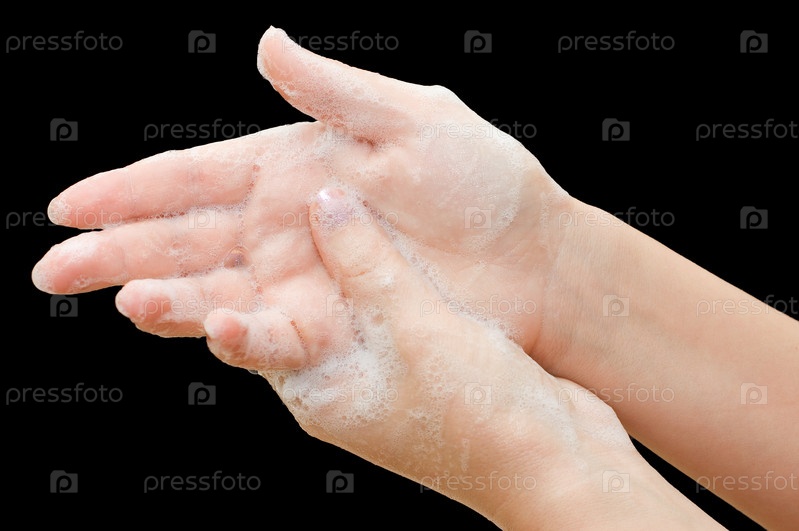 Женские руки в мыльной пене на черном фоне