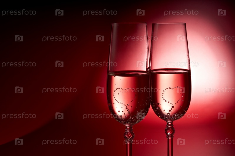 Два бокала с пузырьками в форме сердец