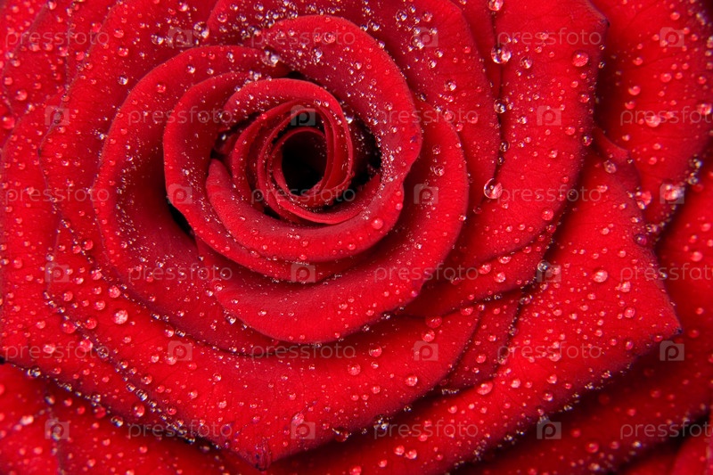Красная роза с каплями воды