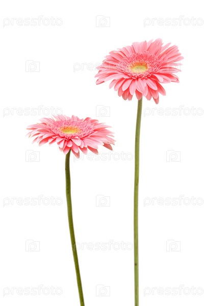 Два цветка герберы на белом фоне