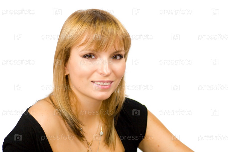 Портрет молодой счастливой девушки на белом фоне