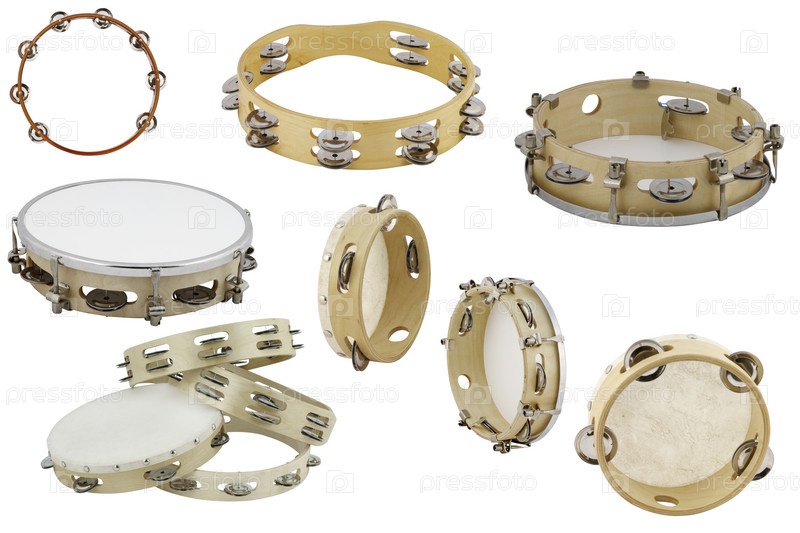 Различные бубны на белом фоне