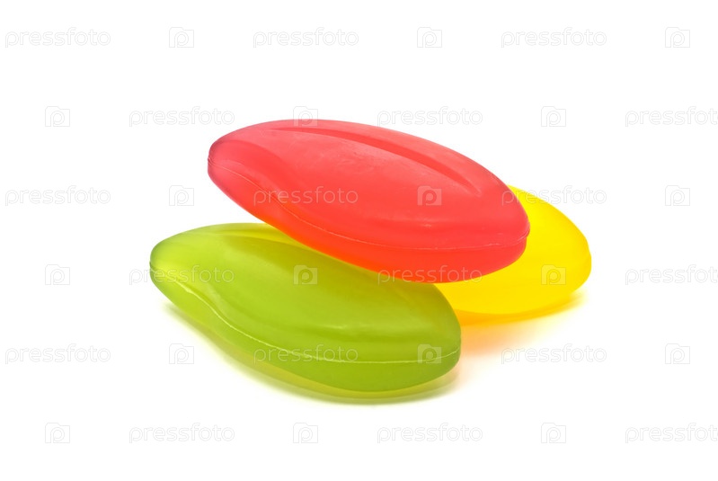 Многоцветные кусочки мыла на белом фоне