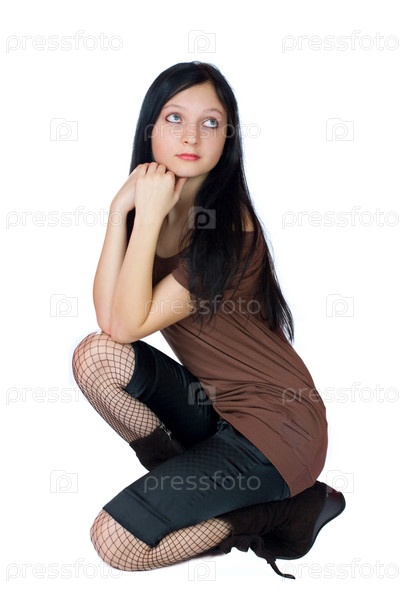 Портрет молодой девушки, сидящей на полу