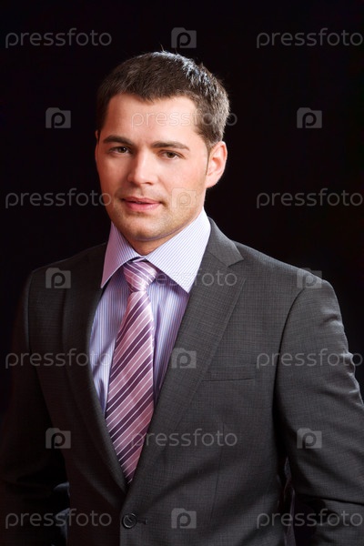Портрет молодого мужчины в костюме на черном фоне