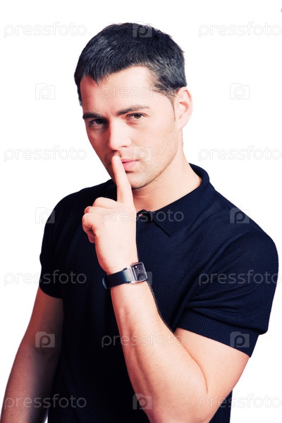 Молодой мужчина, просящий тишины