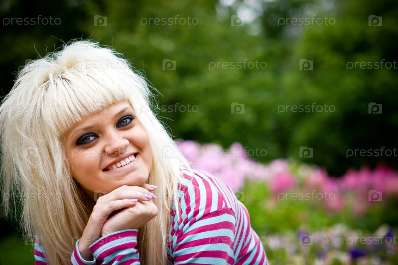 Улыбающаяся девушка отдыхает в парке