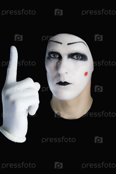 Мим на черном фоне жестикулирует