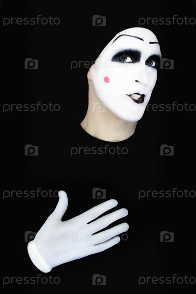 Мим на черном фоне жестикулирует