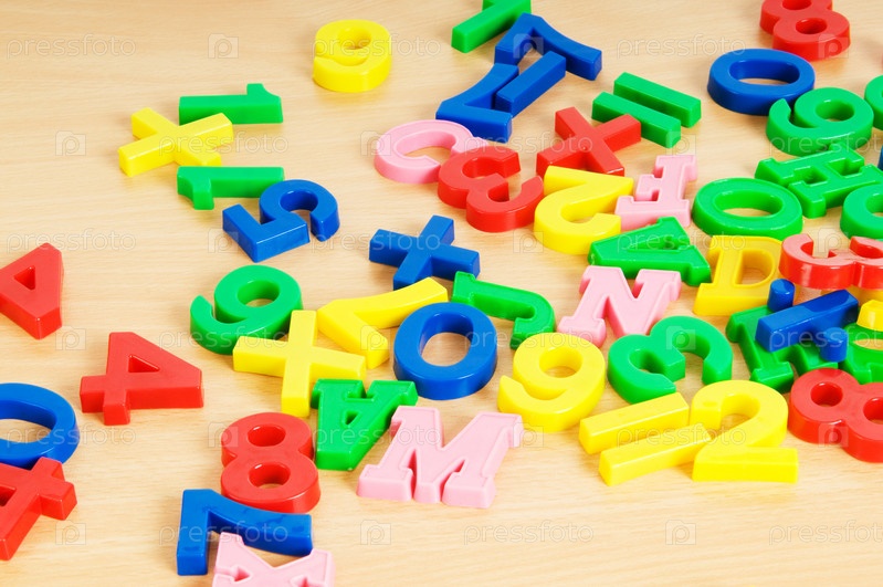 Детские магнитные буквы и цифры крупным планом