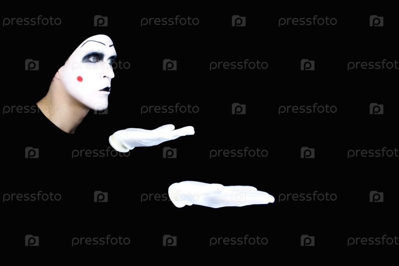 Мим на черном фоне жестикулирует