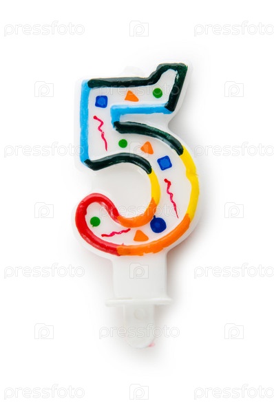 Свеча в форме цифры 5, изолированная на белом фоне