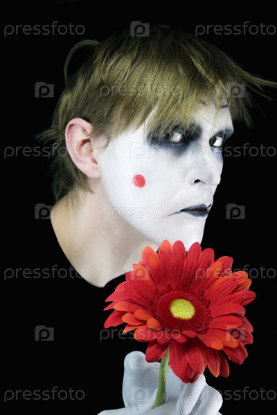 Мим на черном фоне с цветком