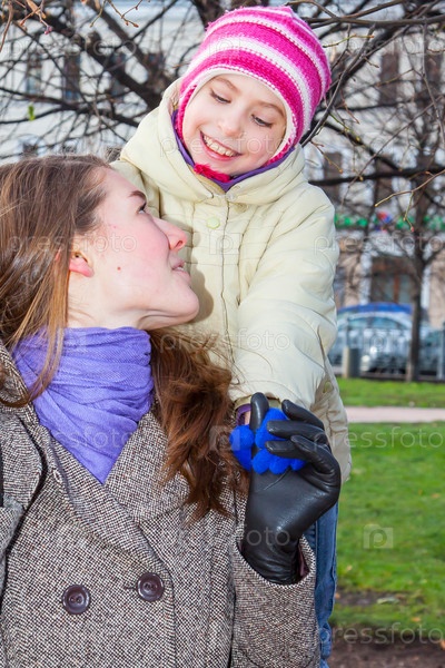 Молодая мать гуляет с красивой дочерью в парке
